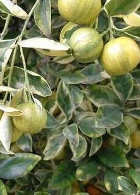 Cây chanh cẩm thạch là loại cây có thể vừa dùng làm cảnh vừa để ăn trái, lá cây có màu xanh viền trắng. Cây chanh cẩm thạch có hoa thường đơn độc, nở xòe 5 cánh màu trắng tươi, rất thơm, chùm nhụy rất ngắn.